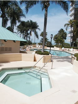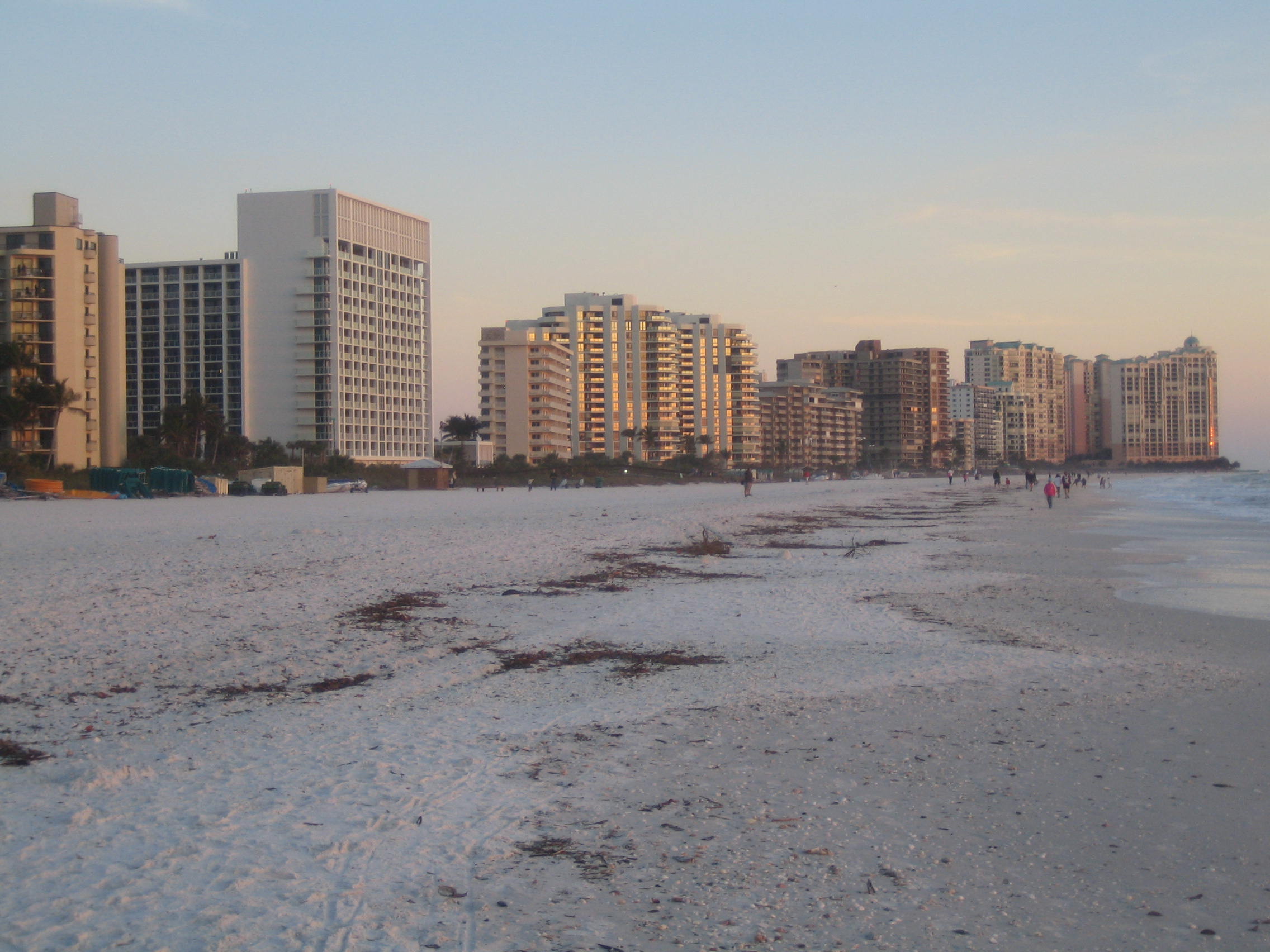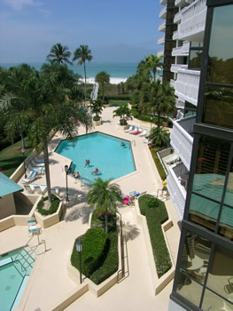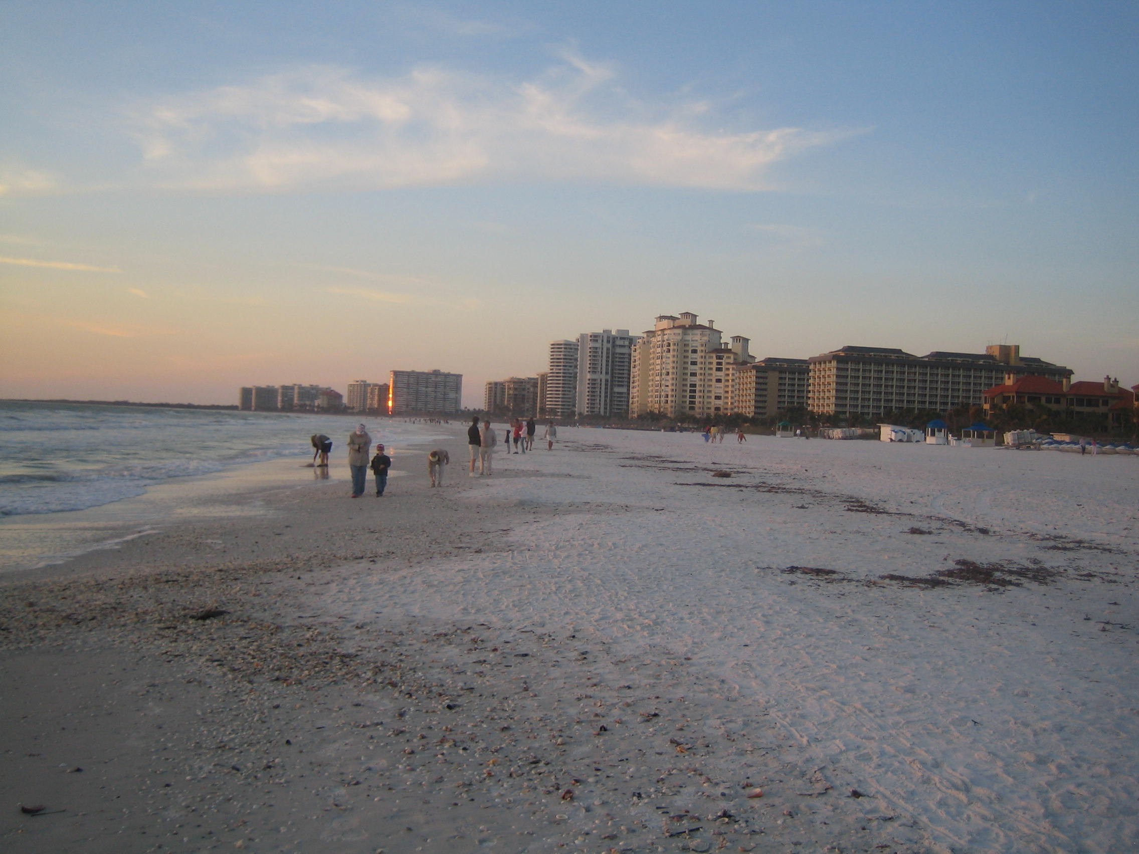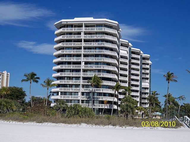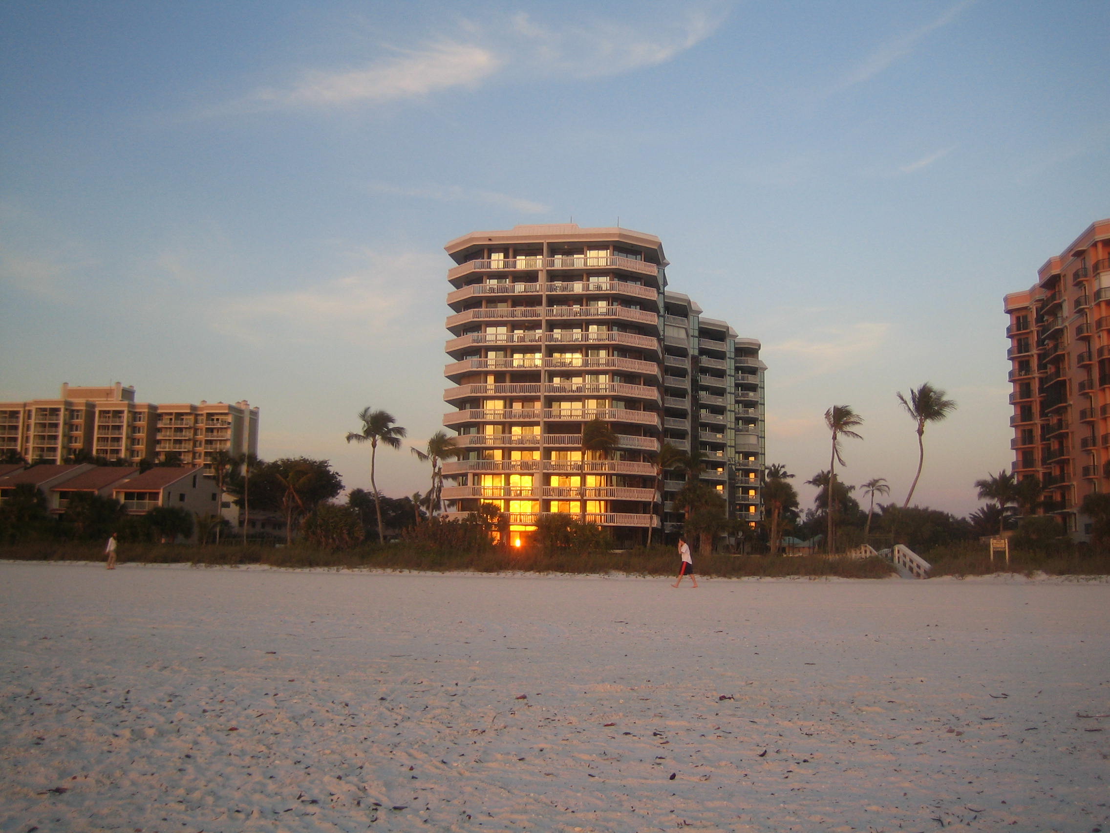 We can walk directly from our building to the Marco Island beach. Because of our location between the Hilton Hotel and the Marriott Hotel, we have access to all beach amenities, such as umbrellas and chairs, jet skis, para sailing, and just plain sunbathing!! Here are some views: